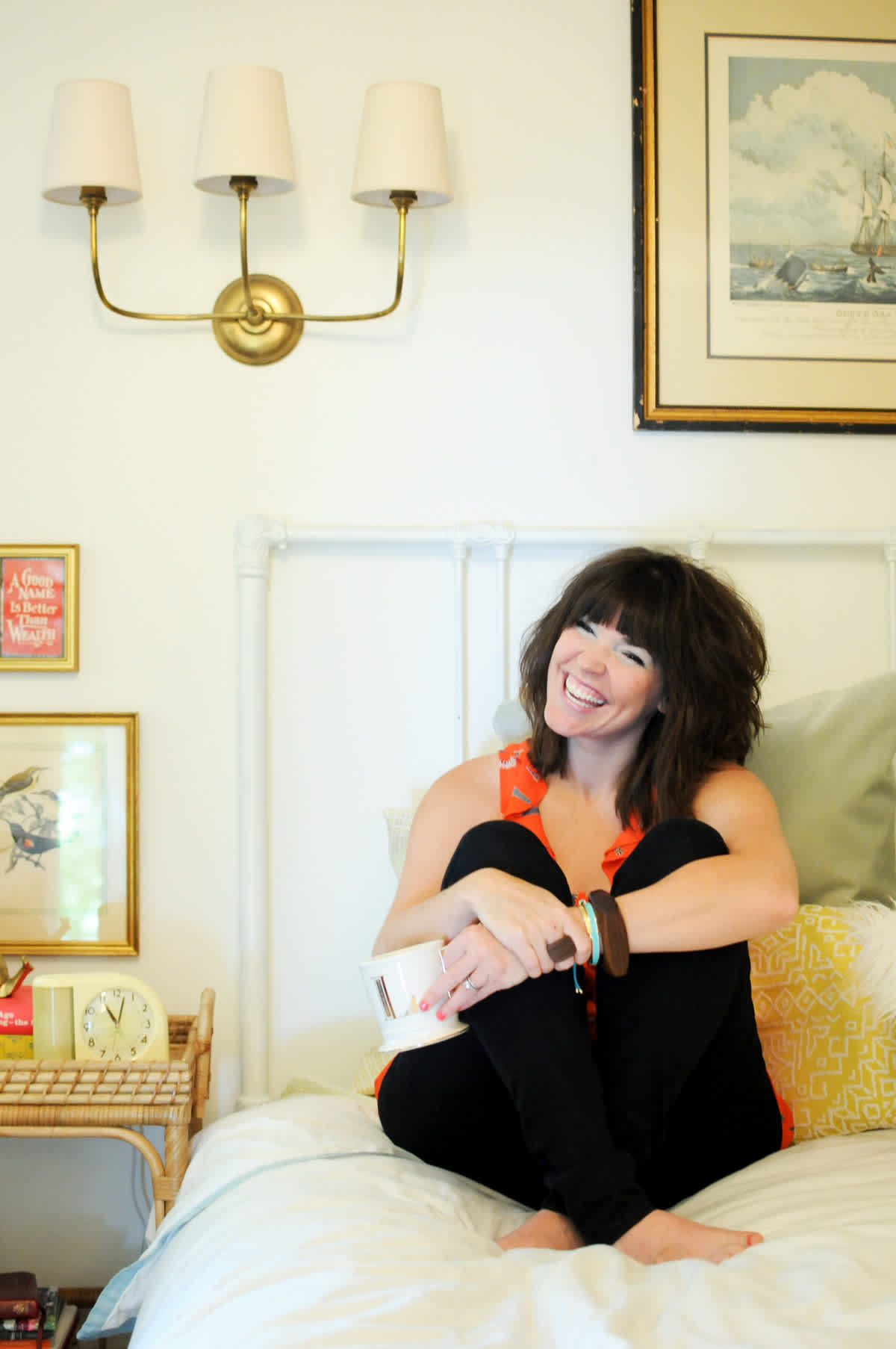 Alea took most of these in our bedroom, which we recently overhauled. It's super cozy, and I'm still crazy about it. Recently, I have taken to a new nighttime routine which includes a hot shower and then reading before bed. I know that isn't anything crazy, but I found I was just doing things/work/etc. until it was time to crash and I would have a hard time settling down. The shower sort of washes away the day and clears my mind and then the reading under those perfectly glowy sconces just puts me in my happy place. I find I am less stressed and resting so much better!