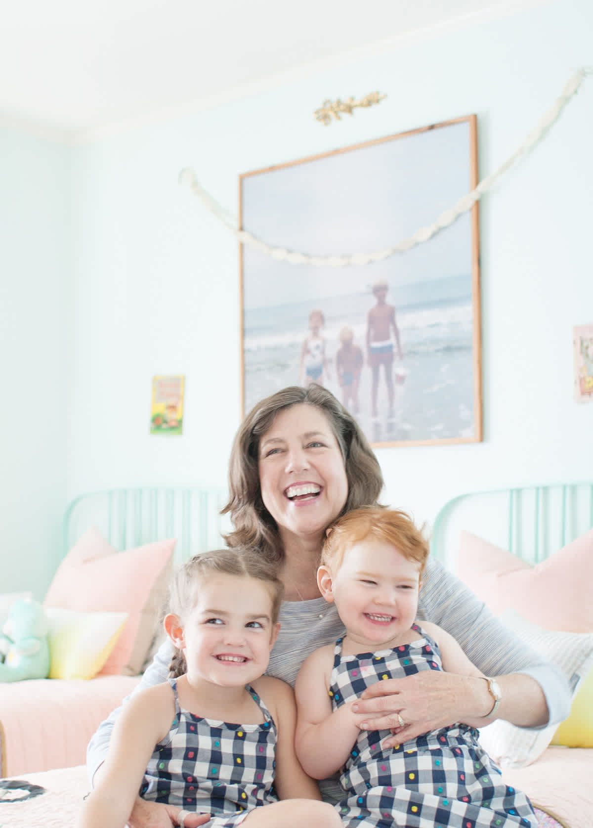 I'm so excited to get to share this room with y'all today! This has been such a fun project, and might just be my new favorite. I love it when a passing thought ends up working out to become a meaningful endeavor. I shared this style board recently with the direction for this room, and here is is all completed. (I'm SO grateful to the Crate and Kids for working with us on this little dream project!). Chip's parents (Nana & GDaddy) don't live too far away from us, and we enjoy spending fairly frequent overnights there. I asked Nana if she would be up for working on a room refresh, since she now has three granddaughters (my girls, and their cousin) after raising two boys. She went along with it, and I appreciate her going out on a limb and letting me work on this space in their sweet home. It's actually the house that belonged to her grandparents, and there are a lot of memories and heritage here, so I know it's no small thing to turn over a room to her daughter-in-law!