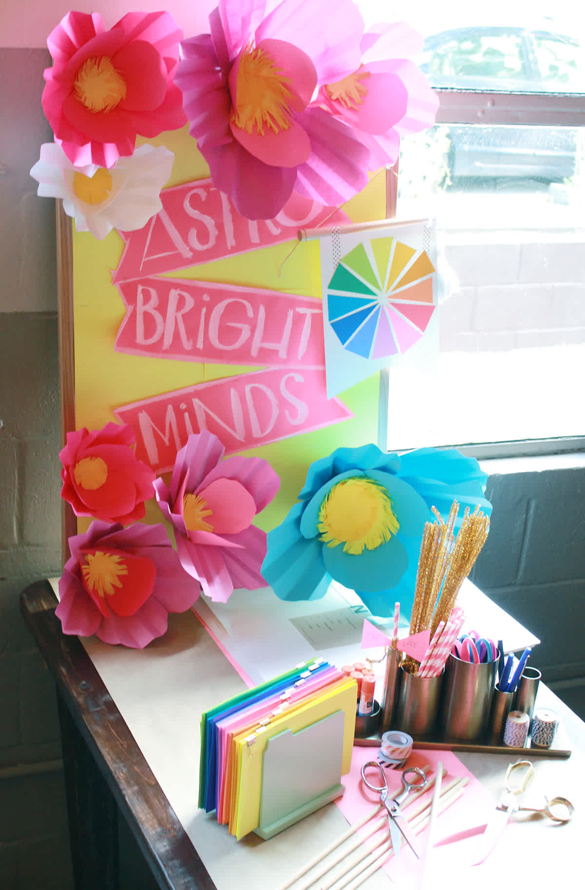 Recently, I worked with Astrobrights Papers to put together an event to celebrate and host some of the teachers they collaborate with regularly. They asked for some fun party decor, and a couple of crafts to work on with the guests, to show them some fun new ways to work with their gorgeous line of papers.