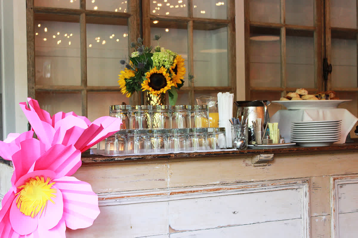 The event was held at Sun in My Belly, a beautiful and especially yummy place, and I created some large paper flowers to brighten up the space a little more. I followed this tutorial, which was really simple. Vivi even helped me make some which she loved, and also requested a few in extra crazy colors for her to place in her room.