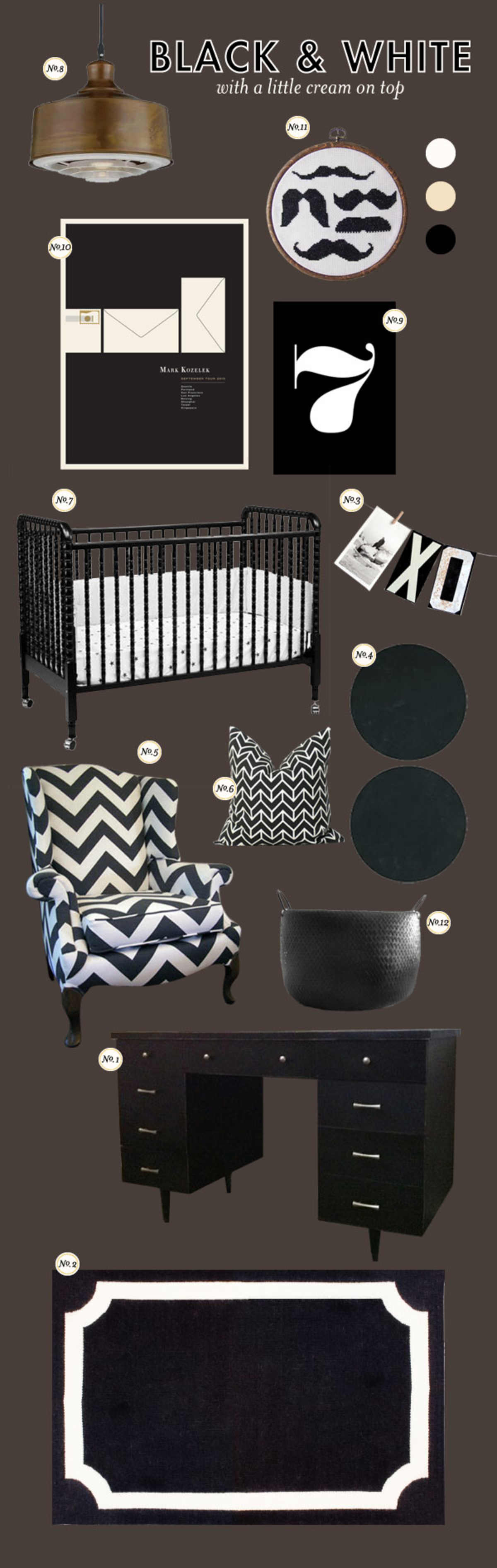 Here is a more neutral version of the black and white board on a warm, charcoal backdrop. That mansard rug is a bit pricey, but I have always wanted to include it in a board - the Dash & Albert rug from the previous post works well, too, and would also lighten the space.