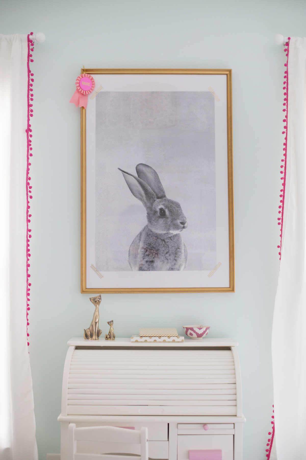(Sources: Gabrielle Rug; Desk; Bunny Print; Pom Pom Curtains)
