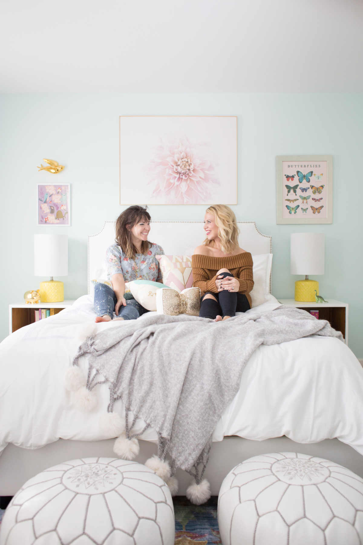 This room is a great example of how you can make a space feel perfectly girly without being super pink. The light minty walls make the room feel like a jewel box, and the pops of yellow in the lamps give it personality. I love these nightstands, too. The white paint gives them polish, and there is plenty of space for stashing books and treasures.