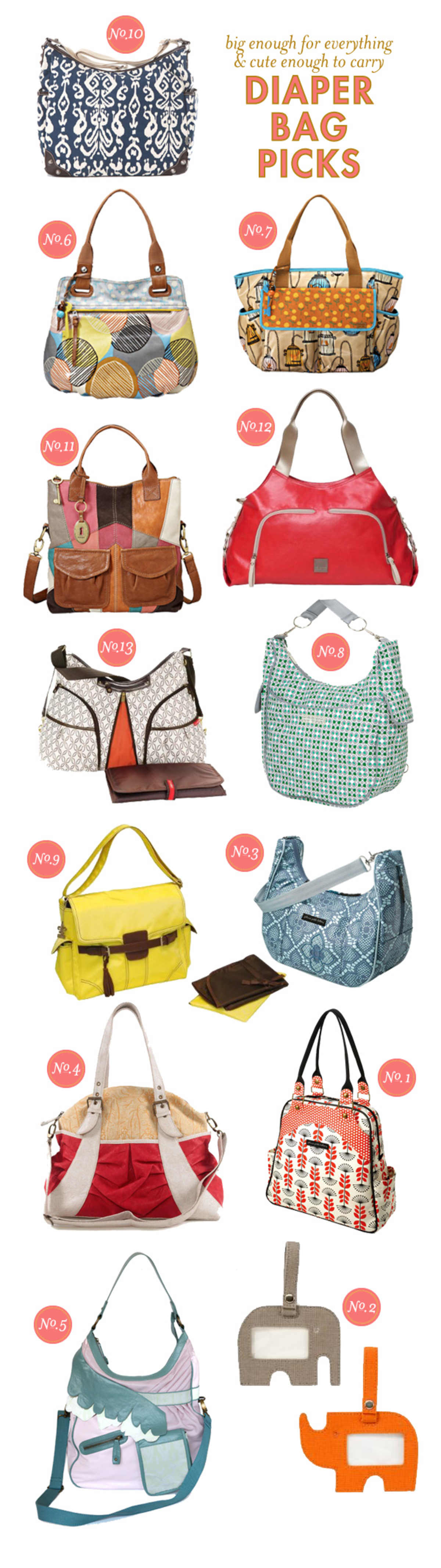 Kim emailed because she is looking for the perfect diaper bag. Her favorite pick is this Marc Jacobs beauty, but she wanted something with a slightly lower price tag. Above are some fun choices - I love those Fossil bags with the oilcloth like material that would be easy to keep clean! I actually have the crazy looking Amy Kathryn Tote (#5) and love it. Also, the Petunia Pickle Bottom bags can often be found at discounted prices at various maternity stores as well as on Totsy, Zulily, or their regular warehouse sales if you are able to wait a bit.