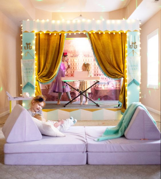 A play theater is such great gift for this in between age. Vivi has spent so much time in her theater already, and she and her neighbor friend are always writing new songs, so it's the perfect place for them to practice.