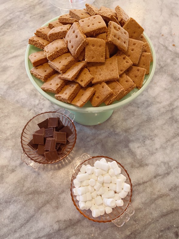 This was such a fun party experience - the girls had so much fun crafting and creating that we *almost* ran out of time for food and cake. We also had the fireplace on downstairs, and we made tiny s'mores with tiny marshmallows and tiny homemade graham crackers - it was another big hit, too! It was fun to have the "camp" experience with s'mores, but tiny since they also had cake.