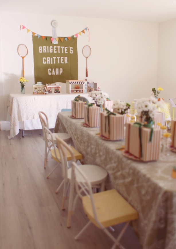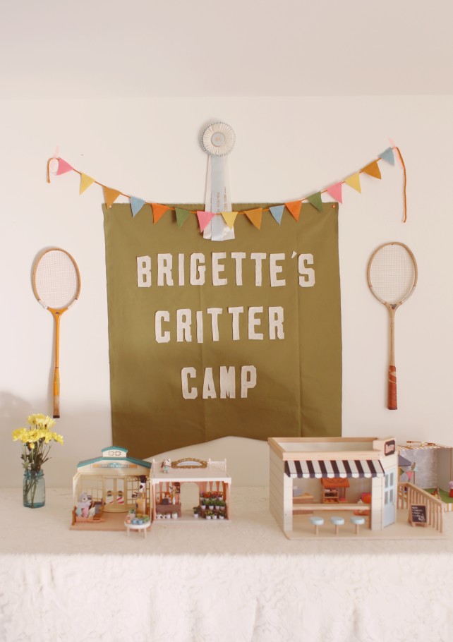 This past weekend, we celebrated my Brigette turning 9. She loves all things animals and tiny and she adores Calico Critters. For her party, we had a little camp themed soiree, and put together little playsets for critters with her friends.