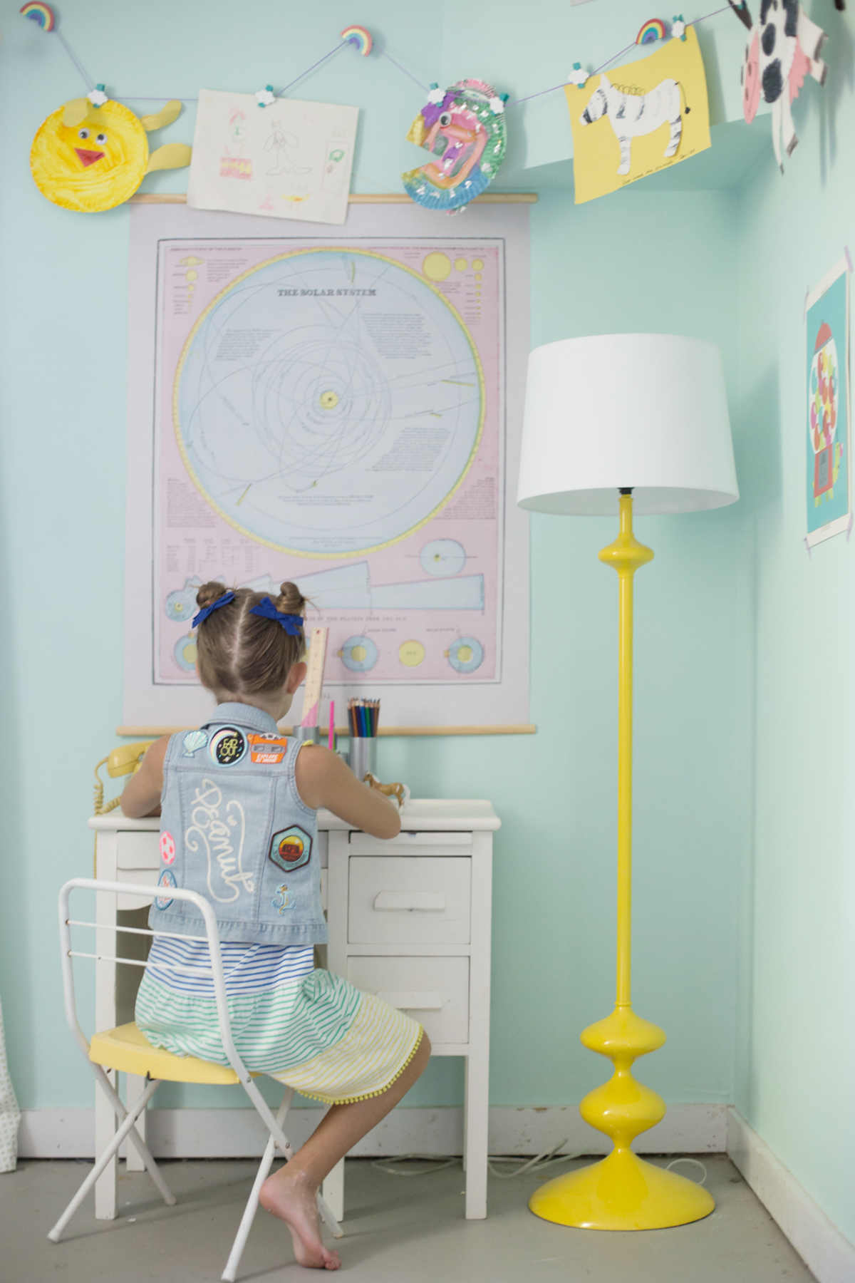 (5) Also, I finally finished up the craft room! I love how it came out, and best of all, Vivi is beside herself with it. I wanted to get it done earlier, but it turns out we haven't been home as much this summer as I expected. We'll be loving it when we return, though, and it will be a great spot for Vivi to do her homework! Below is a little peek: