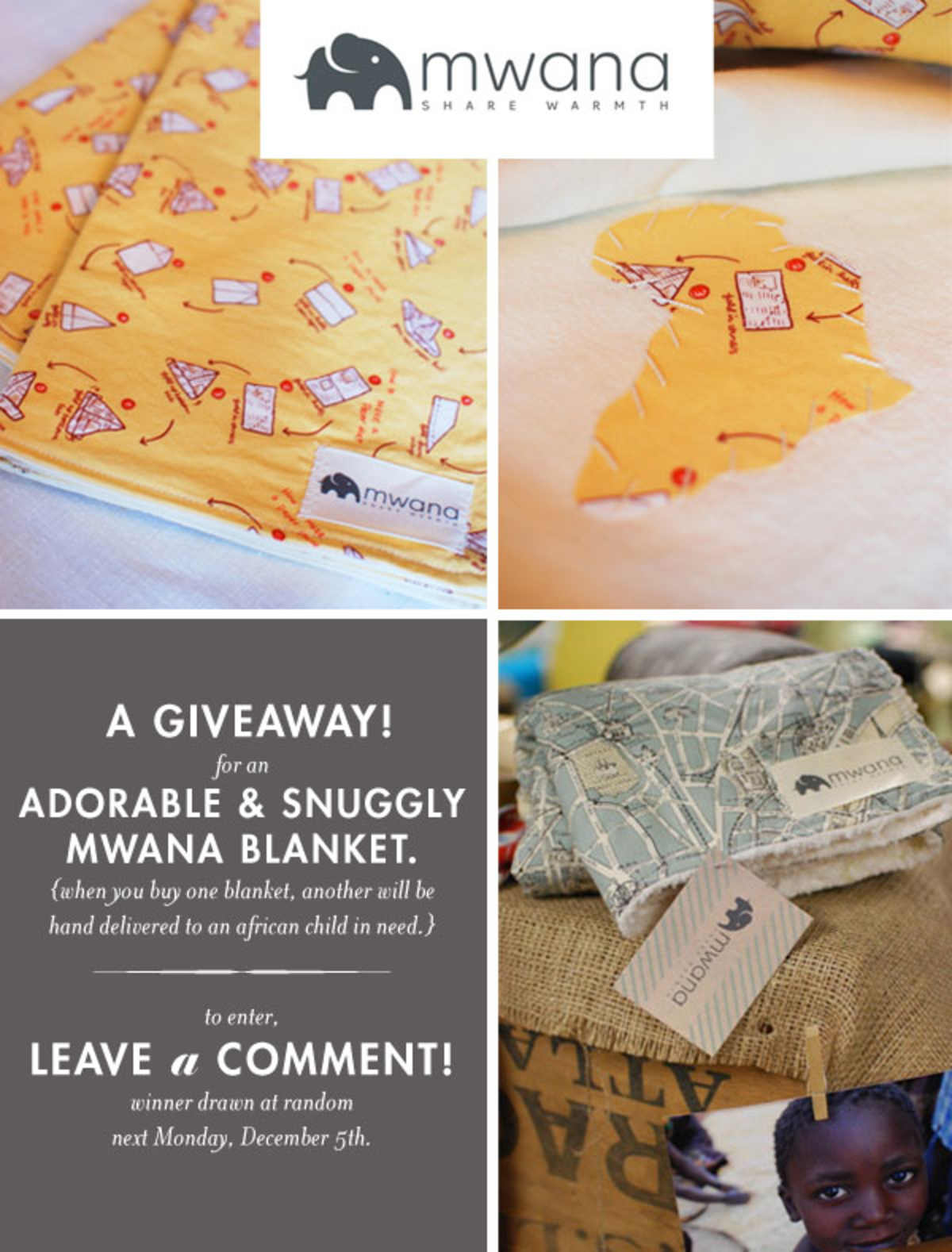 Recently, I posted on the Lay Baby Lay Facebook wall about Mwana blankets and Brooke emailed asking if I'd like to do a giveaway for one of the sweet and cuddly blankets she creates. I was more than happy to say yes, and what perfect timing with Christmas around the corner! She chooses the sweetest fabrics, and the blankets are backed with fleece, complete with a hand sewn appliqué of Africa on the back as a reminder of what the blanket represents. For every blanket (or tshirt - I just bought one!) purchased, another will be hand delivered to the village of Mgyawi in Malawi, Africa to keep a child warm. Did you know the temperature drops into the 30s there at night, and these babies and children have nothing to protect them from the cold, other than dirt walls? Brooke has received 50 blanket donations so far and is hoping to reach 250 by May 2012 to meet the needs of this specific village. I have a feeling she will blow that number out of the water, though! If you want to enter the giveaway for the sweet yellow and red blanket above, just leave a comment here, and keep Mwana in mind as you work on Christmas shopping!