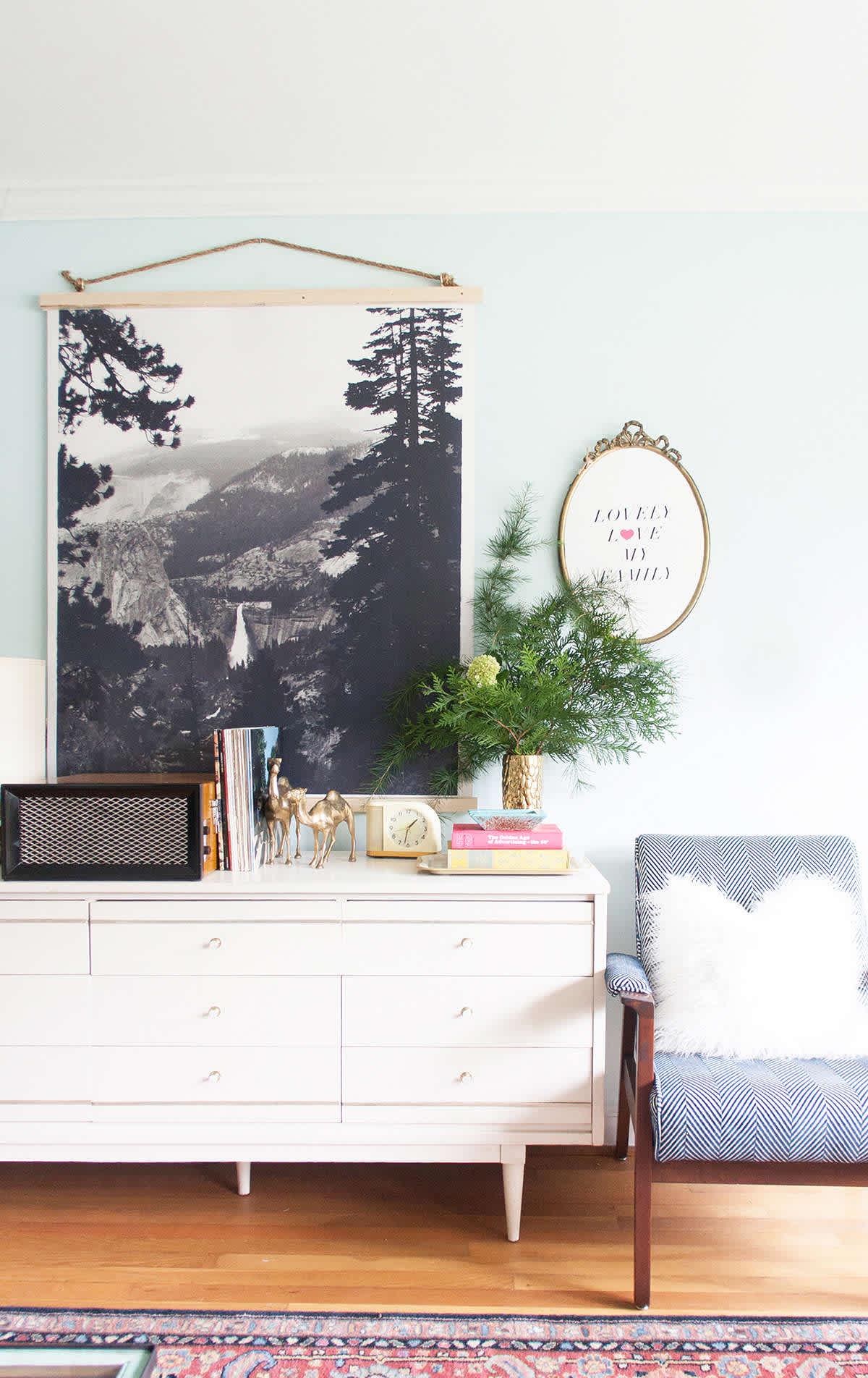 It's really pretty simple. Just scan your image in at least 600 dpi. This printer/scanner is the new version of the one we have, and it's super handy, and also scans at an even higher 1200 dpi, which is awesome. The above print was created from a small 6" x 9" photo! If you plan to use Framebridge or Parabo Press, both of which I love, then you can just upload the photo/art and they will let you know what size options you have, but you may want to use Photoshop Elements or some other simple editing software to resize it to the size you want if you plan to print it via Staples or some other store.