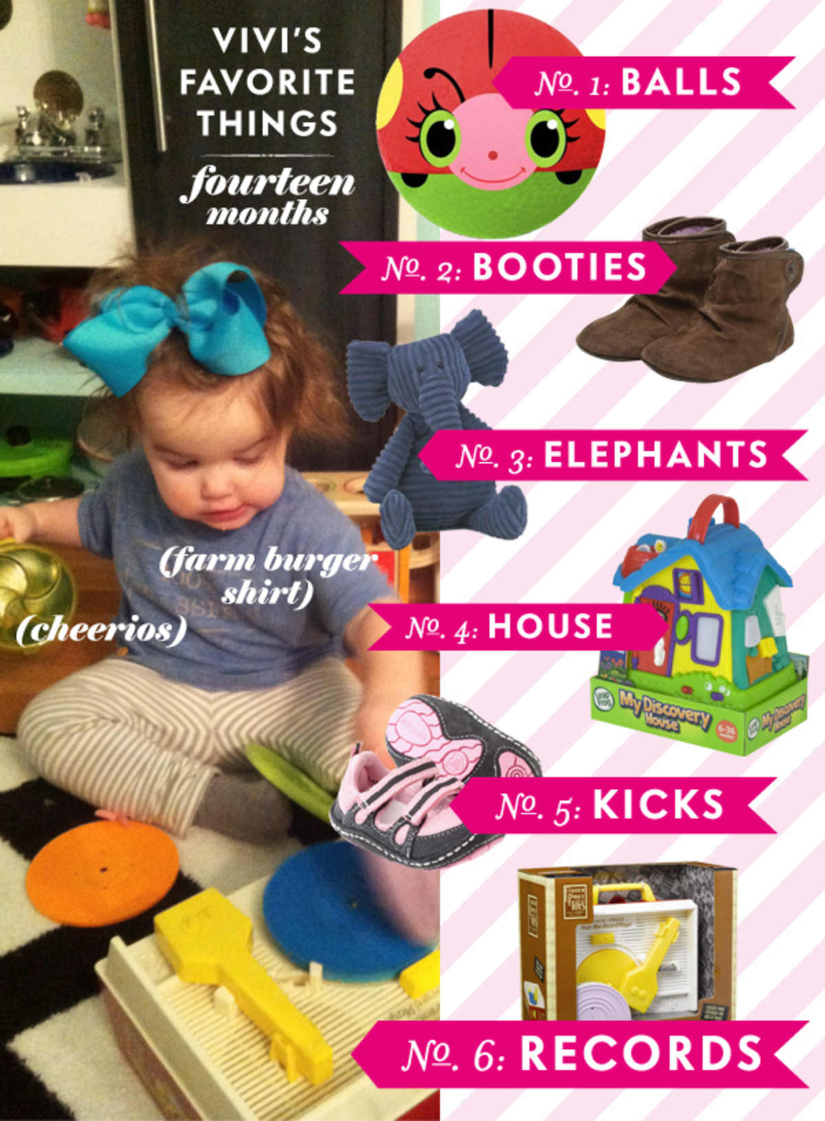 (6) Records: My parents brought up my old Fisher Price record player, and Vivi thinks it is the greatest. She doesn't really get how to change the records, but she likes handing them to me to change out, and the songs make her dance. She also likes to carry it around the house by the handle. Apparently, the re-released version isn't quite the same, so finding a vintage player might be a good idea. It's always a good distraction and makes her happy if she is a bit cranky.